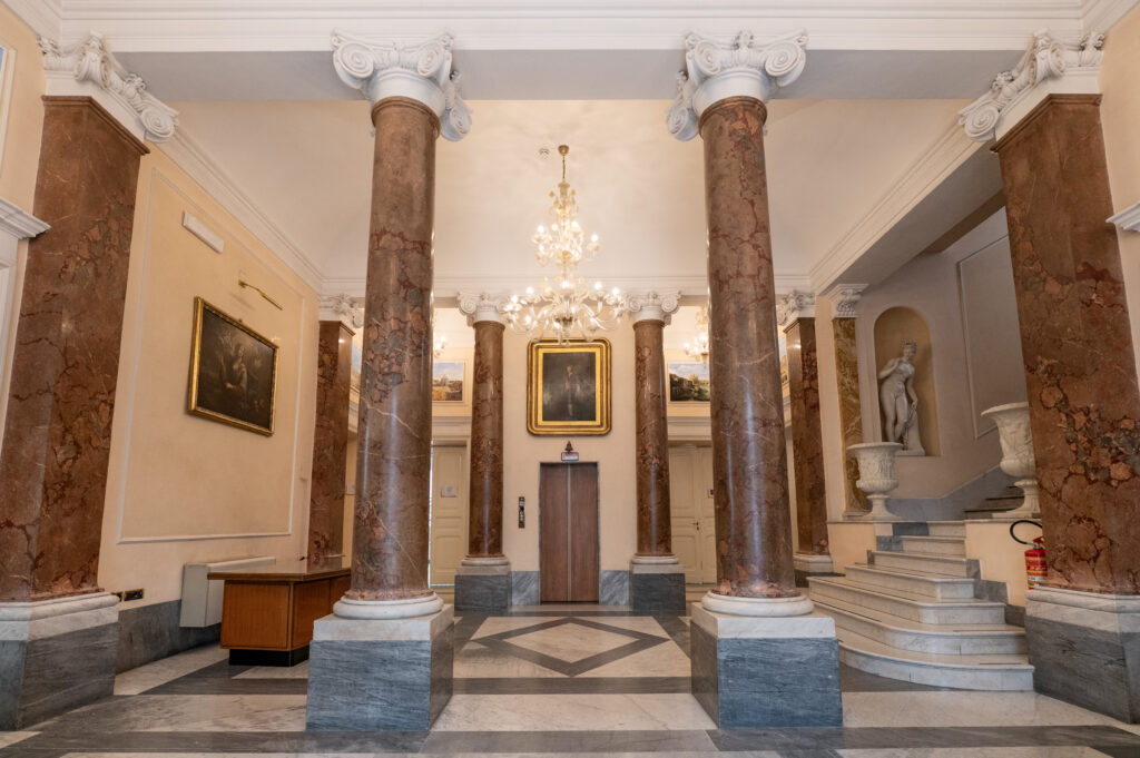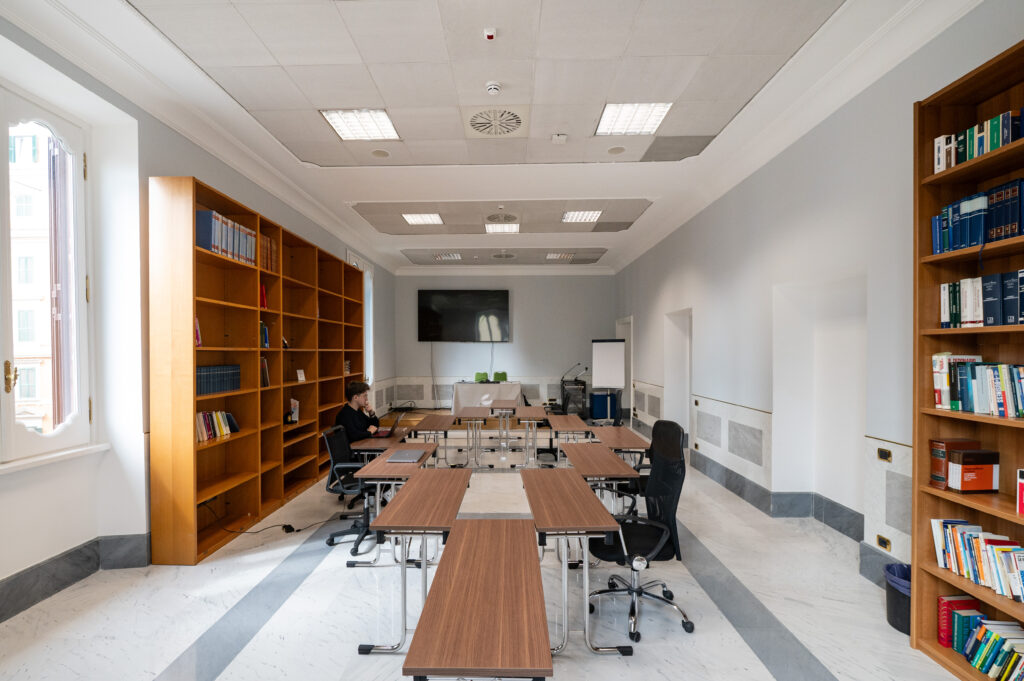 All’interno, soffitti affrescati narrano storie antiche, mentre 17 aule all’avanguardia rispondono alle sfide di oggi, eccellenti per un’esperienza formativa coinvolgente e interattiva, capaci di rispondere alle esigenze contemporanee di comunicazione e didattica.